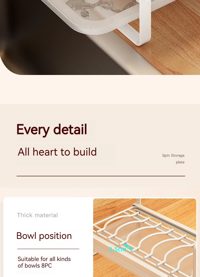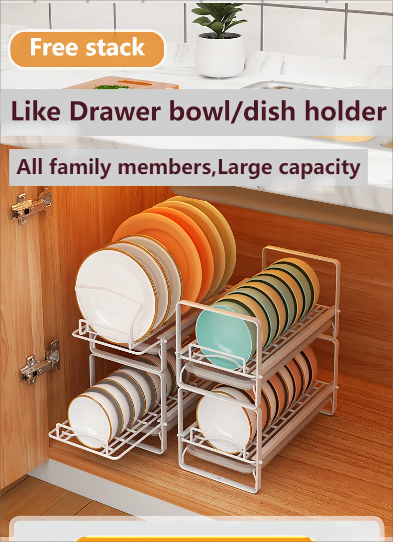 Dish Drain Shelf Stackable Drawer Bowls and Plates Organizer Rack Countertops Drain Shelf Cabinets Sink Cutlery Storage Shelf